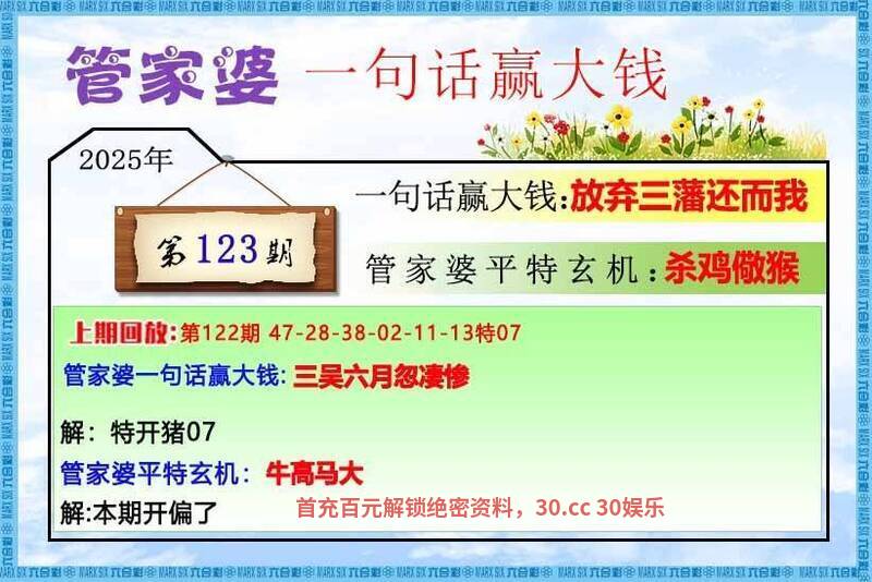 123期:三字平特【猪尿泡】开:羊23错